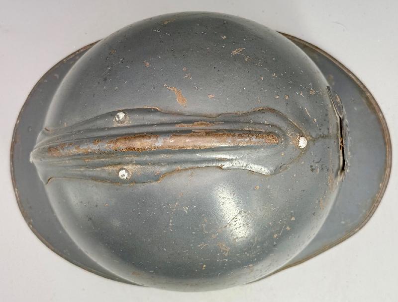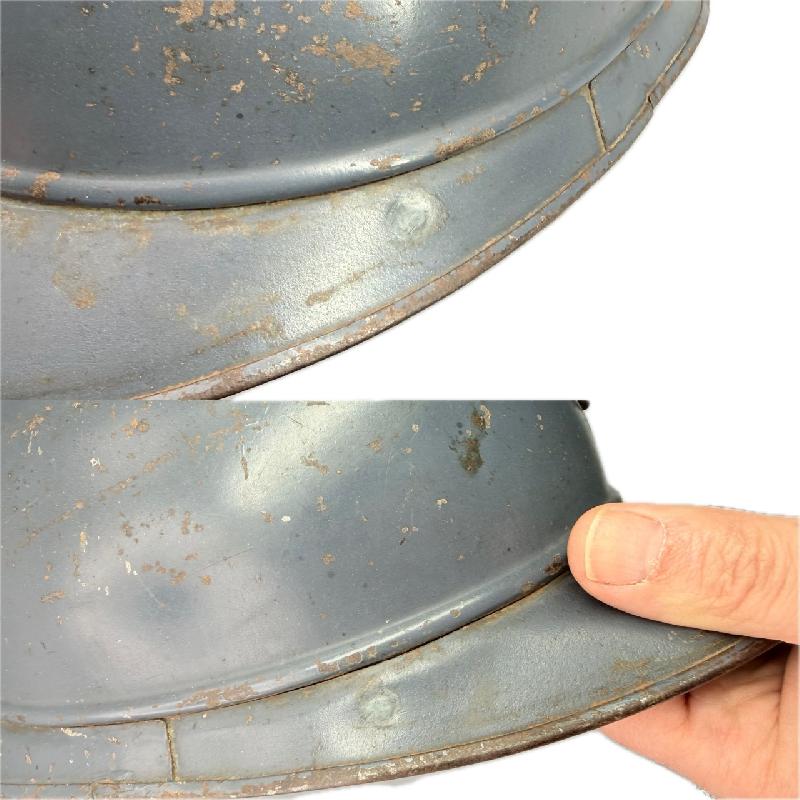 Sur la visière, présence de 2 trous pour le maintien de la plaque laiton "soldats de la grande guerre" qui ont été rebouchés (voir photos).