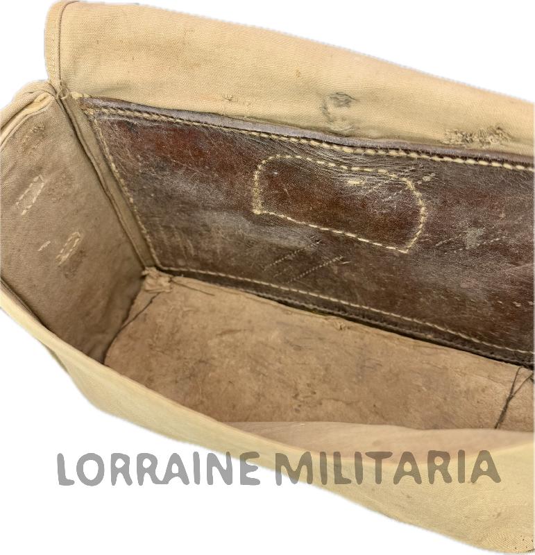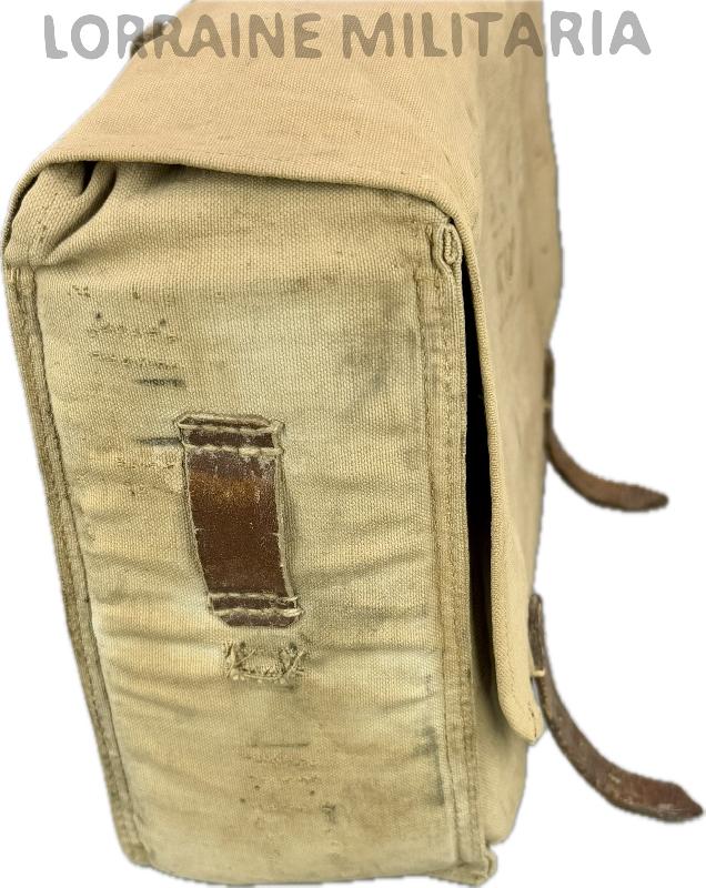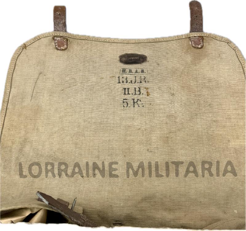 Il est confectionné en toile écrue, avec des passants cuir latéraux pour y fixer la tente et le manteau. Bien marqué et daté 1916.