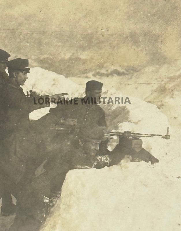 CP PHOTO GROUPE DE MITRAILLEURS ALLEMANDS MITRAILLEUSE BERGMANN LMG 15 Photo CP de mitrailleurs allemands avec mitrailleuse Bergmann LMG 15 A/a en position dans une tranchée enneigée..