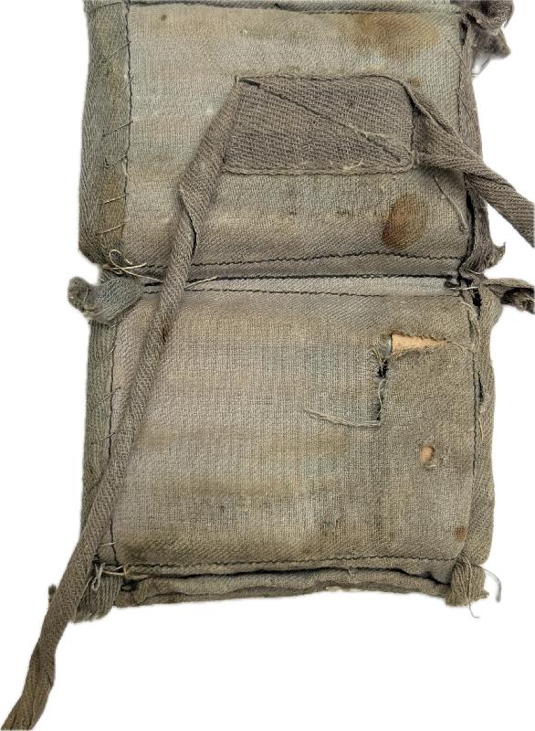 PATRONEN TRAGEGURT ALLEMANDE BANDOULIÈRE CARTOUCHIERE D'ALLEGEMENT Patronen Tragegurt, en toile gris bleu du premier modèle avec rubans cousus pour fixation sur la sangle de sac à pain lorsqu'elle est positionnée sur les cartouchières autour du cou.