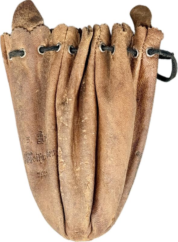BLAGUE A TABAC ALLEMANDE CADEAU NOEL 1915 5ème ARMEE Blague à tabac en cuir avec le monogramme du kaiser Wilhelm II sur la face avant et sur l'arrière il y a écrit "5ème armée, Noël 1915".