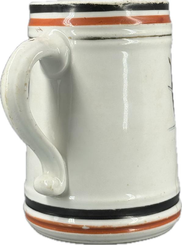 CHOPE A BIERE ALLEMANDE DECOR GENERALFELDMARSCHALL VON HINDENBURG 1914/15 Chope en porcelaine au décor de Von Hindenburg datée 1914 / 1915, celle-ci est en bon état général, juste à noter un fêle sur le coté et le dessous (voir photos). Il s'agit d'une chope de 0,5 litre.