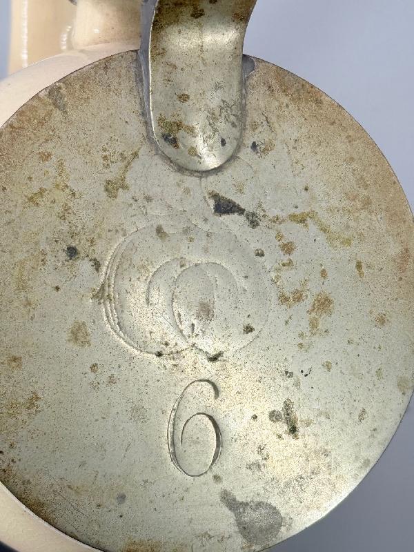 Celle-ci est en très bel état, complète, avec son couvercle qui comporte un monogramme gravé grossièrement à la main du 106ème régiment d'infanterie saxon et un numéro "6" en dessous. .