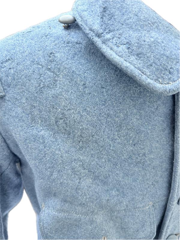 Capote Poiret troupe réglementaire modèle 1914 du 3ème type avec deux poches de poitrine en drap bleu horizon.