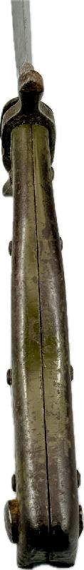 Celui-ci est en très bon état, belle peinture d'origine sur la poignée. La lame est bien marquée du fabricant Demag à Duisburg, elle est très propre, aucun coup, légèrement sale.