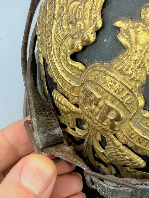 Lorraine Militaria CASQUE A POINTE ALLEMAND TROUPE PRUSSE MODELE 1895 DU 174 IR STRASBOURG FORBACH