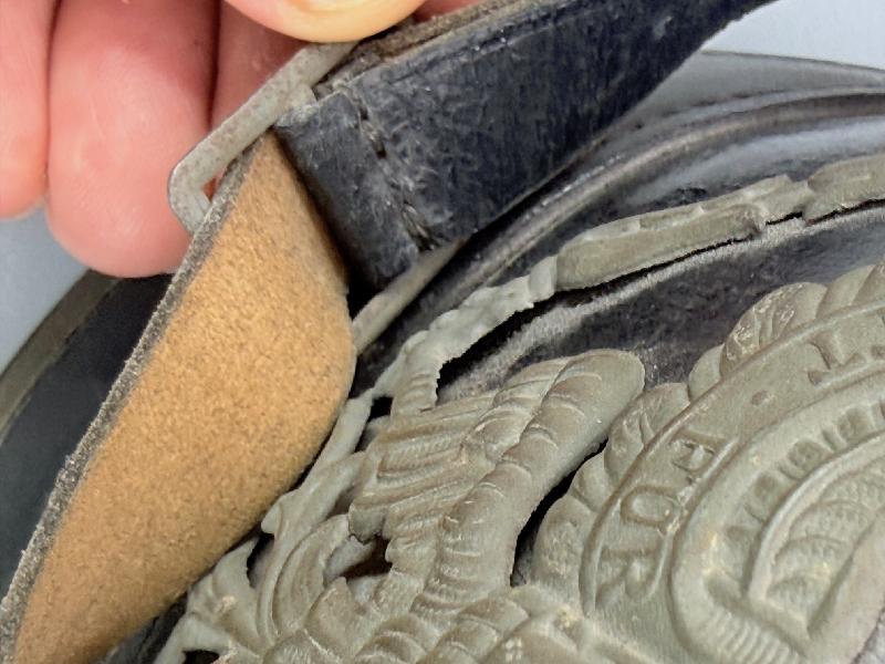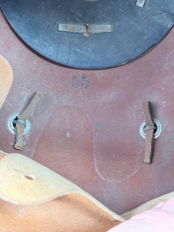 A noter, 2 petits trous dans la nuquière, typique des prises de guerre; pour y être accroché sur un mur.