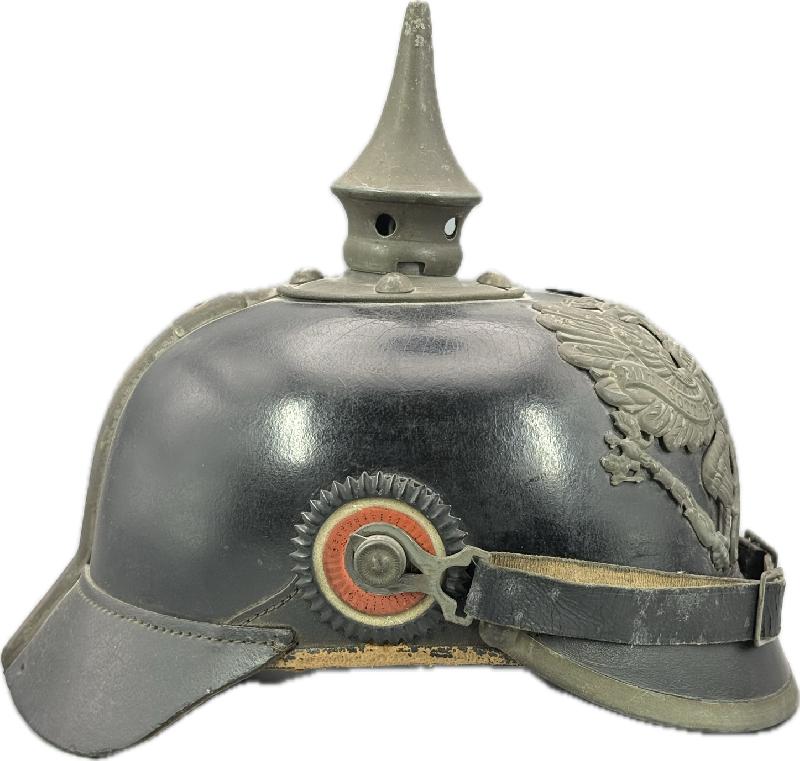 Lorraine Militaria CASQUE A POINTE ALLEMAND TROUPE PRUSSE MODELE 1915 DU RJR 23 DATE 1916