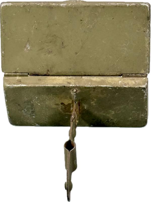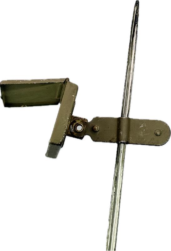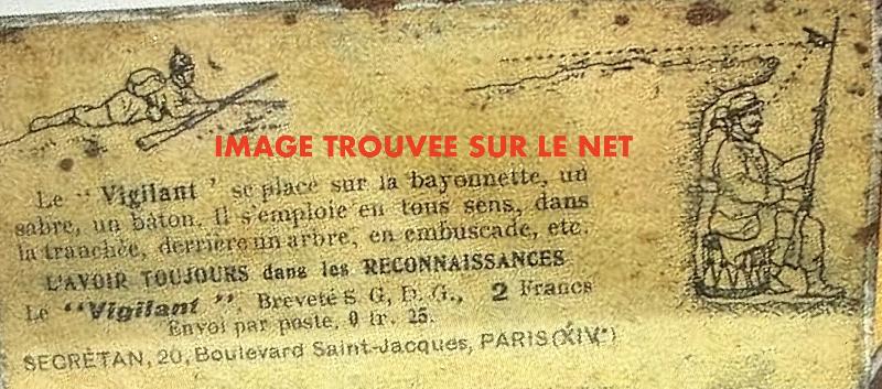 MIROIR DE TRANCHEE FRANÇAIS "LE VIGILANT" POUR BAIONNETTE LEBEL Petit miroir en tôle du modèle "le vigilant" permettant d'observer les lignes ennemies sans être à découvert; il se fixe sur la lame de la baïonnette rosalie.