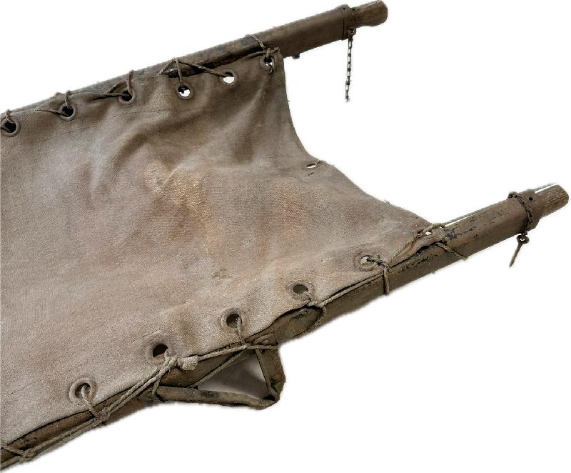 Lorraine Militaria BRANCARD PLIANT ALLEMAND COMPLET AVEC SA TOILE DU GRENIER