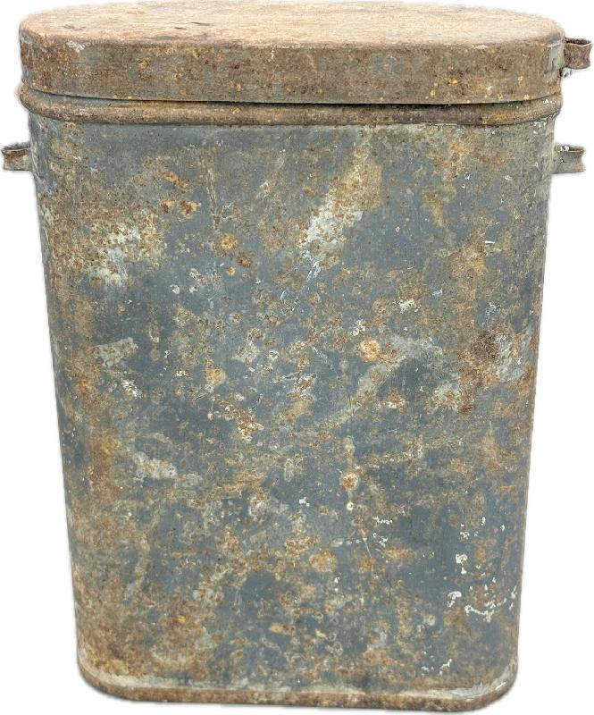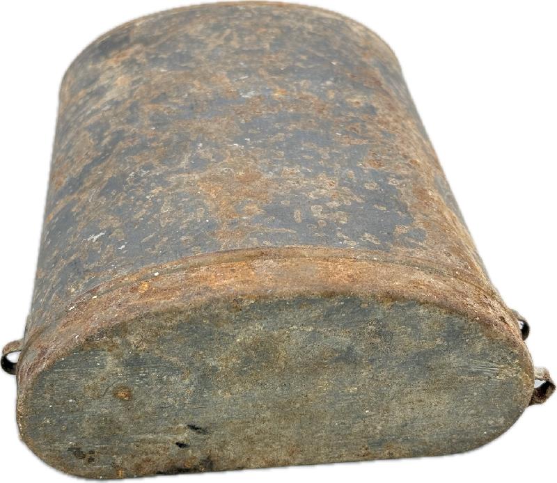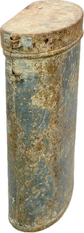 BOITE DE MASQUE A GAZ FRANÇAIS M2 DEMI-OVALE Boite en tôle pour masque à gaz M2, modèle demi-ovale.