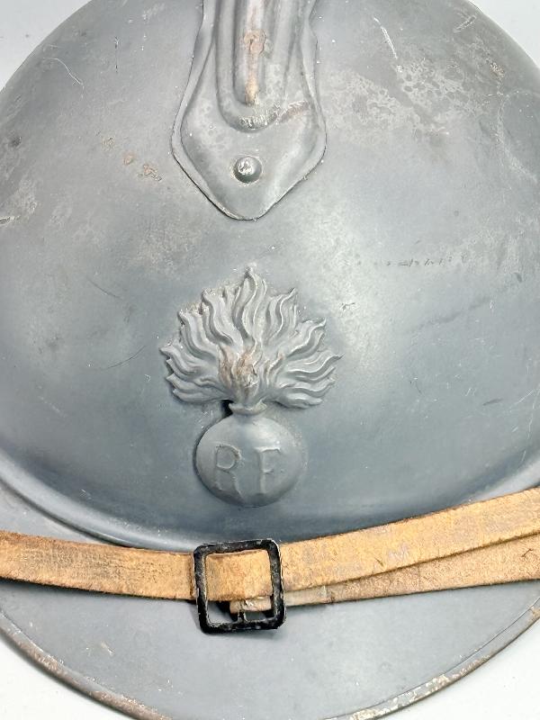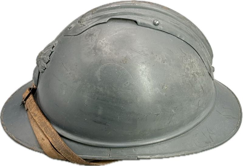CASQUE FRANÇAIS ADRIAN INFANTERIE PREMIER TYPE Casque adrian d'infanterie du premier type, peinture bleu horizon brillante du début, insigne à la grenade.