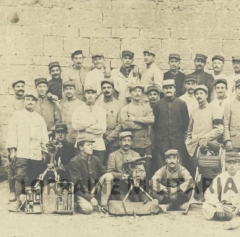 Lorraine Militaria CP PHOTO GROUPE ARMURIERS FRANÇAIS   HOTCHKISS MLE 1914 MG08 1907 TROUSSES ACCESLorraine Militaria Lorraine Militaria