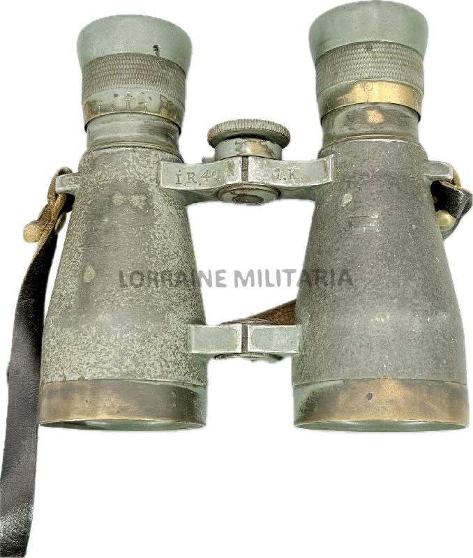 Jumelles feldgrau, complète avec sangle de suspension en cuir, oculaires non abimés, optique très clair. Elles sont bien marquées du fabricant et régimentées du 49 IR, première compagnie.