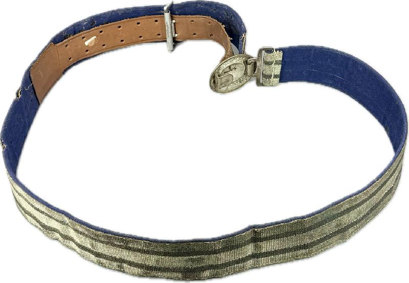 Celui-ci est en état moyen, des trous de mites sur la laine bleue (voir photos). Belle boucle blanche nickelée (régiments blancs), manque les deux passants, attache réglable de la boucle en aluminium.