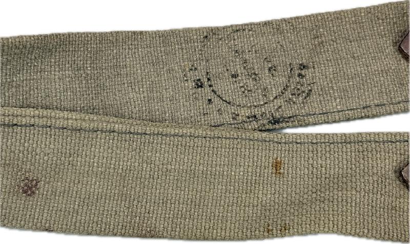 Complète, toile en très bon état, une lame ressort est cassée sur l'un des deux mousquetons. Tampon illisible du fabricant.